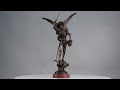 Scultura di bronzo con patina marrone "San Michael che gira il drago" secondo l'originale di Emmanuel Freimiet. Rappresenta il santo alato che solleva la spada in aria per sparargli sul drago che sale sul piedistallo della statua. È vestito in armatura con una mano di maglia, un casco curvo e una tunica galleggiante attorno ad esso. Alla sua mano sinistra, tiene un piccolo scudo decorato con un punto. La sua testa è alogena. Questo lavoro molto dettagliato mostra una grande ricchezza di tagliare. Il tutto poggia su una base di marmo. Modello al Musée d'Orsay, a Parigi.